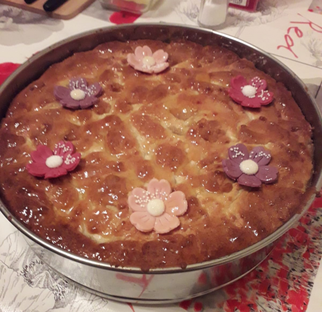 Alles in eine Schüssel geben und durchmixen. Nein! Halt! Ich wollte doch die doppelte Menge machen, sonst wird der Kuchen zu dünn und der Belag zu dick. Also von allem nochmal so viel. Während das Rührgerät die Zutaten vermischt staubt das Mehl.